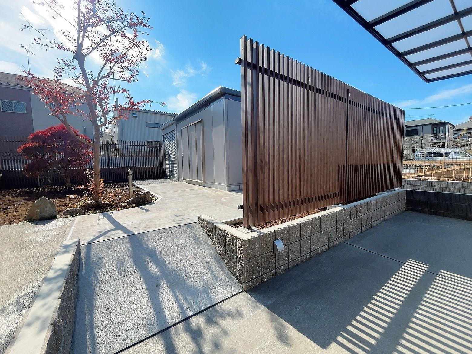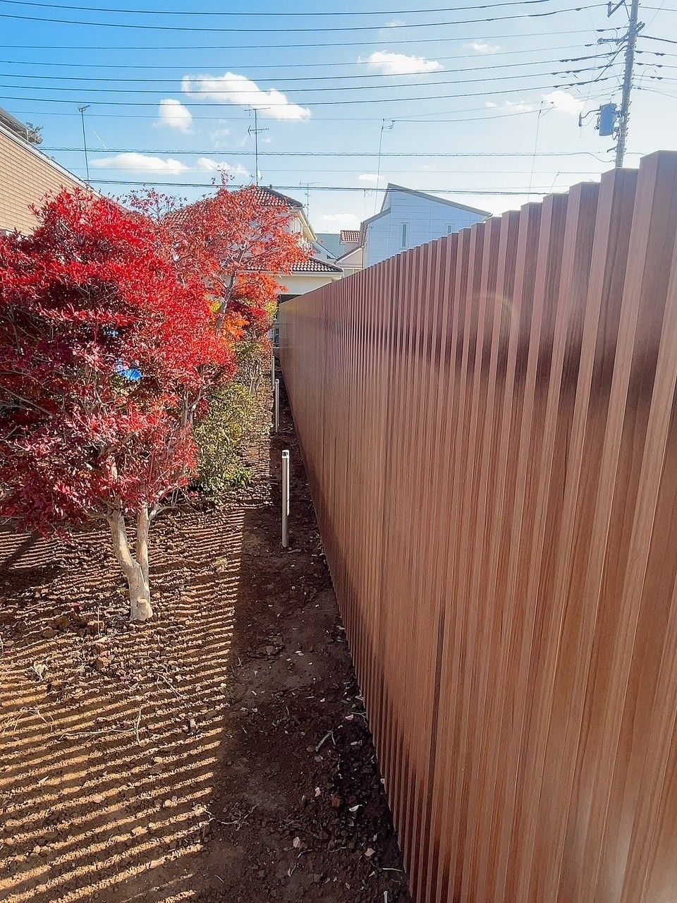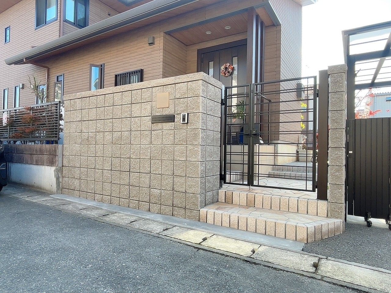 建物と調和のとれたナチュラルデザインなクローズ外構が完成いたしました。