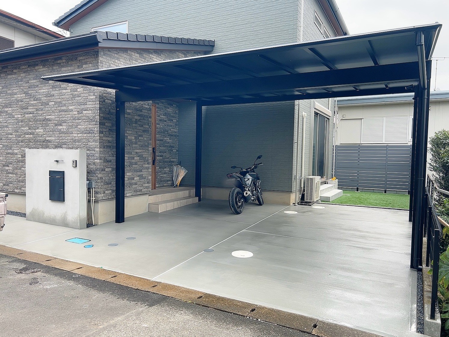 お客様の拘りもしっかりキャッチしつつ、モダンらしさに映えた外構となりました。