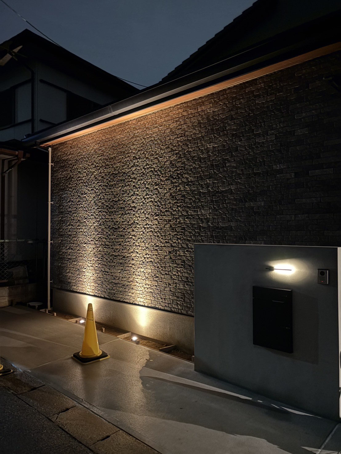 グランドライトは外壁タイルをよりカッコよくライトアップしてくれます。